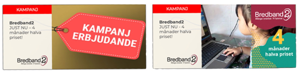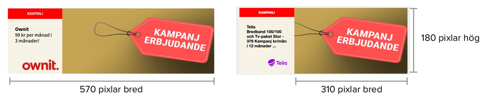 Annonserna markeras automatiskt med en liten röd ruta “Annons” uppe i vänstra hörnet. Undvik därför att lägga text där.