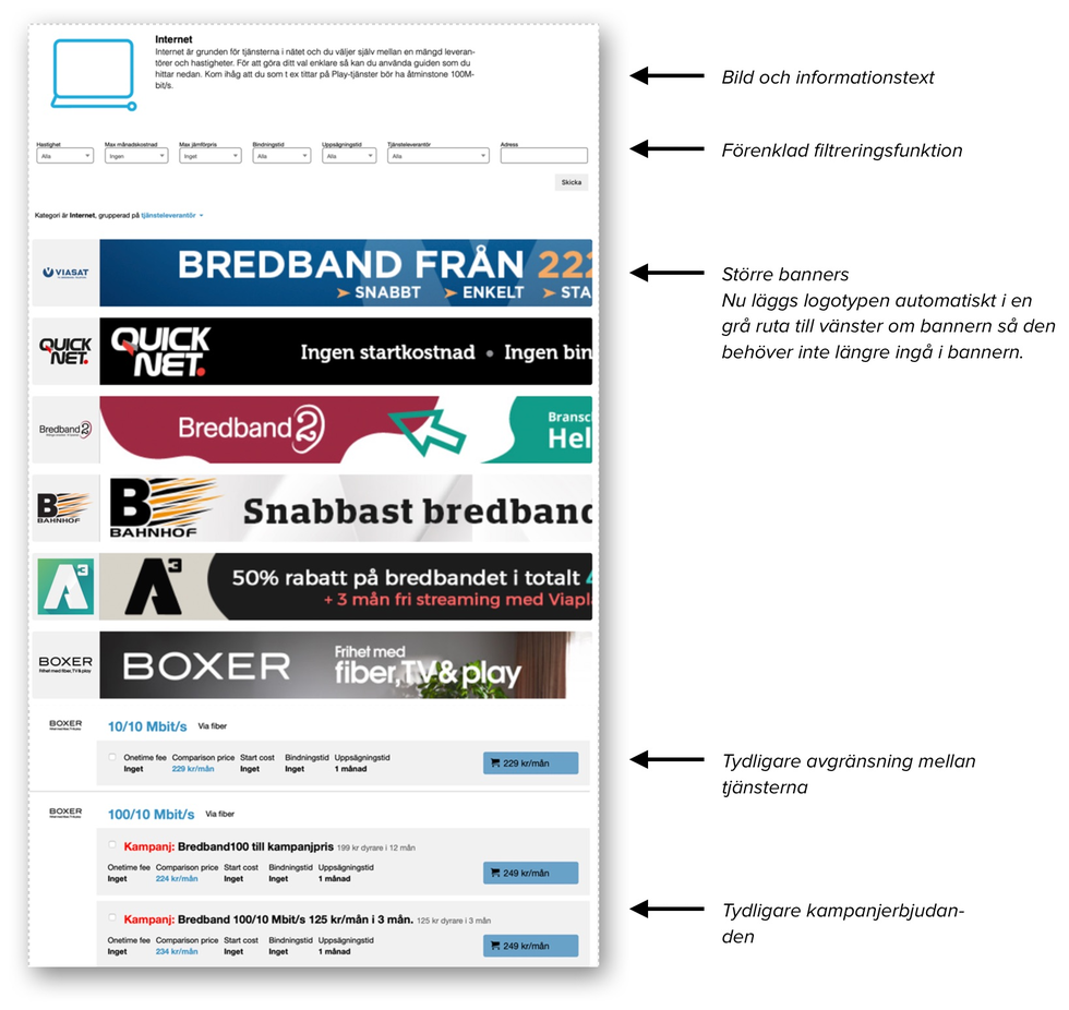 Tjänstelistningen ser lite annorlunda ut i nya Tjänsteguiden. Bannerna är lite större och tjänsterna och kampanjerna är mer tydliga.