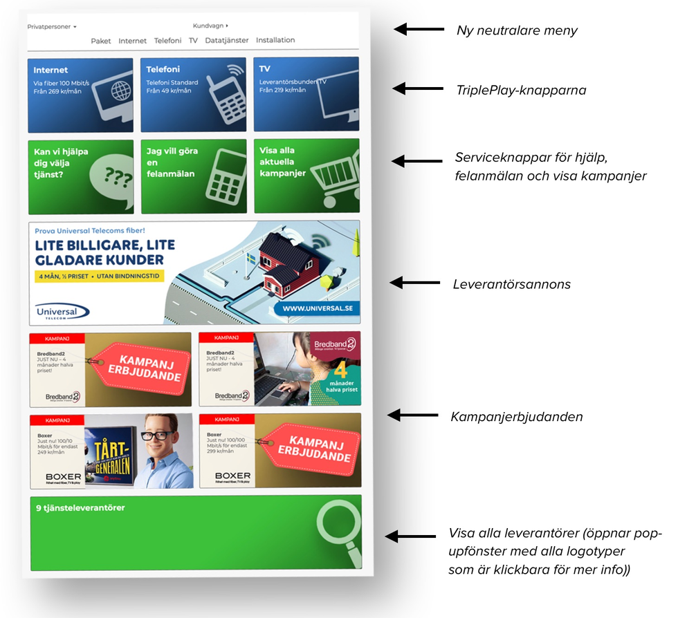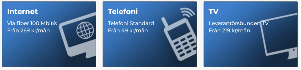 TriplePlay-knapparna visar som tidigare lägsta pris på Internet, telefoni och tv. I inställnngarna kan stadsnätet välja vilken Internethastighet som ska väljas samt även byta ut bakgrundsbilderna.