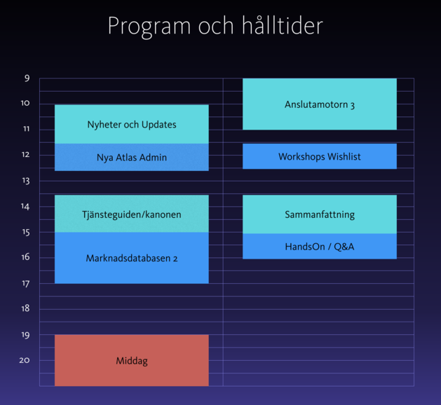 09.00 Anslutamotorn 3, hands on, Q&A, lunch och wishlist till kl 16.00